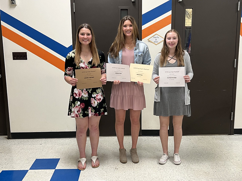 Amber Russell (2022 Eagle Award), Ava Kessler (2022 Defensive and Offensive Player) and Elley Bennett (Free Throw Percentage)