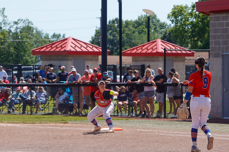 Carterville Varsity Lions got on the board in the top of the second inning after Caidence Phillips singled, Kendall McCalla singled, Carterville Varsity Lions scored on a passed ball, and Kennedy Rushing singled, each scoring one run.