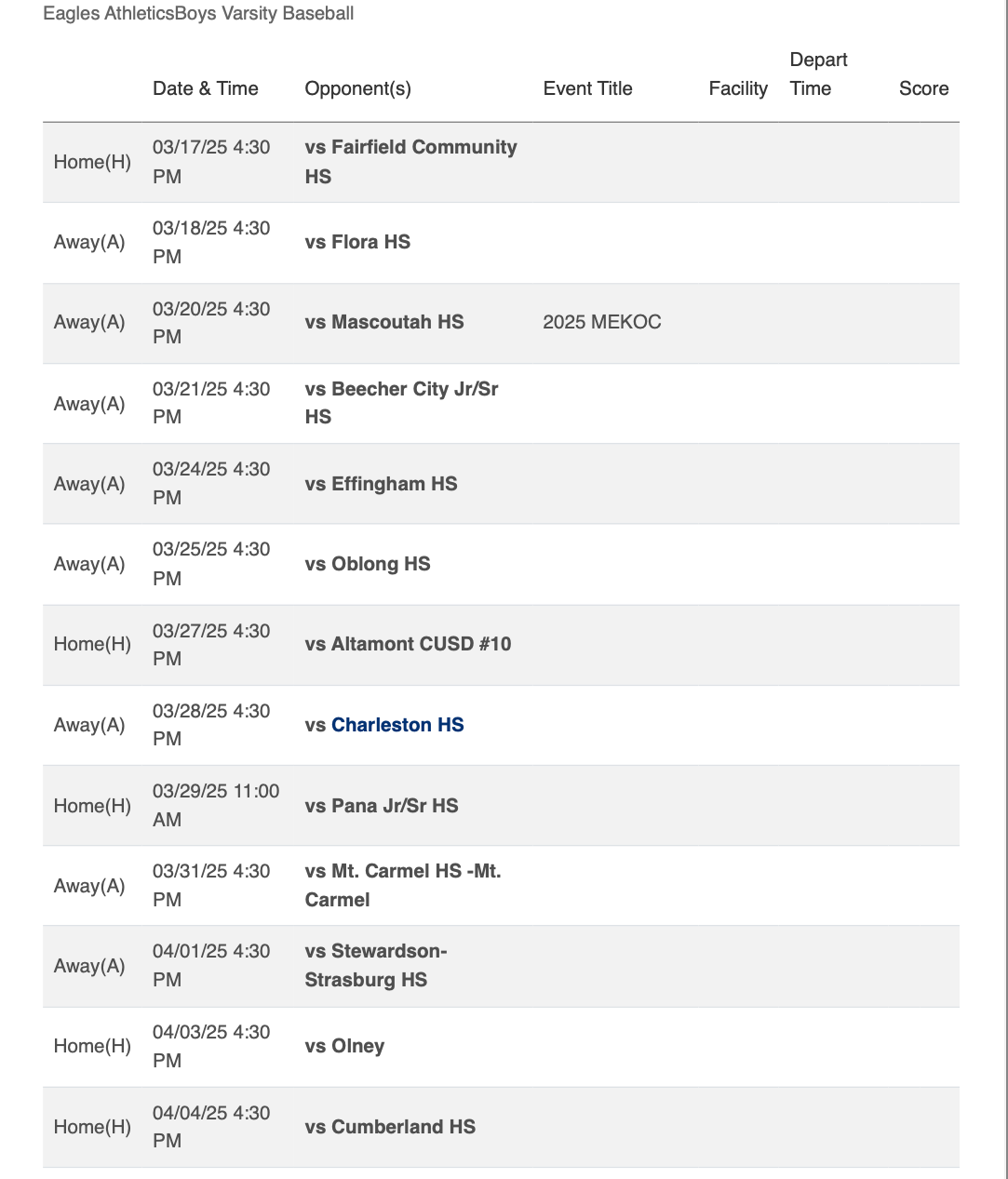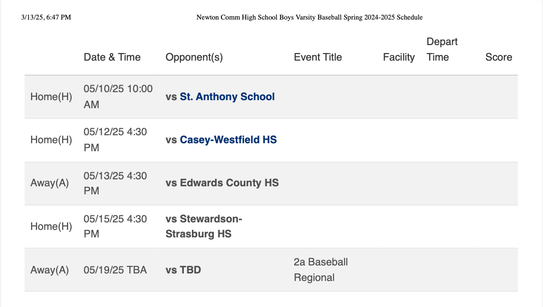 NCHS Varsity Baseball Roster