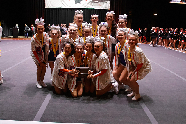 SPRINGFIELD, IL — The Newton Community High School (NCHS) cheerleading team had a stellar showing at the Illinois Cheerleading Coaches Association (ICCA) State Championships, bringing home a fourth-place finish in the Large Game Day Division against some of the state’s top squad competitors.