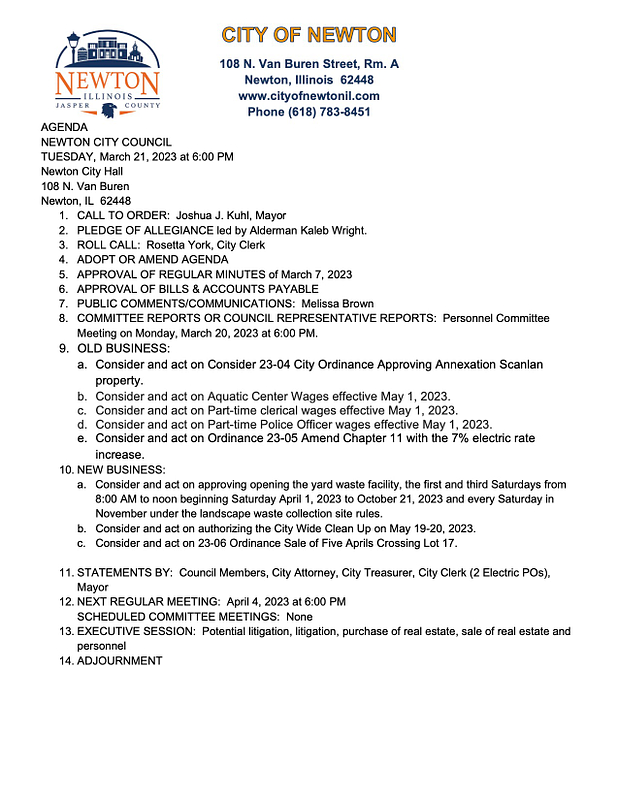 www.cityofnewtonil.com Phone (618) 783-8451