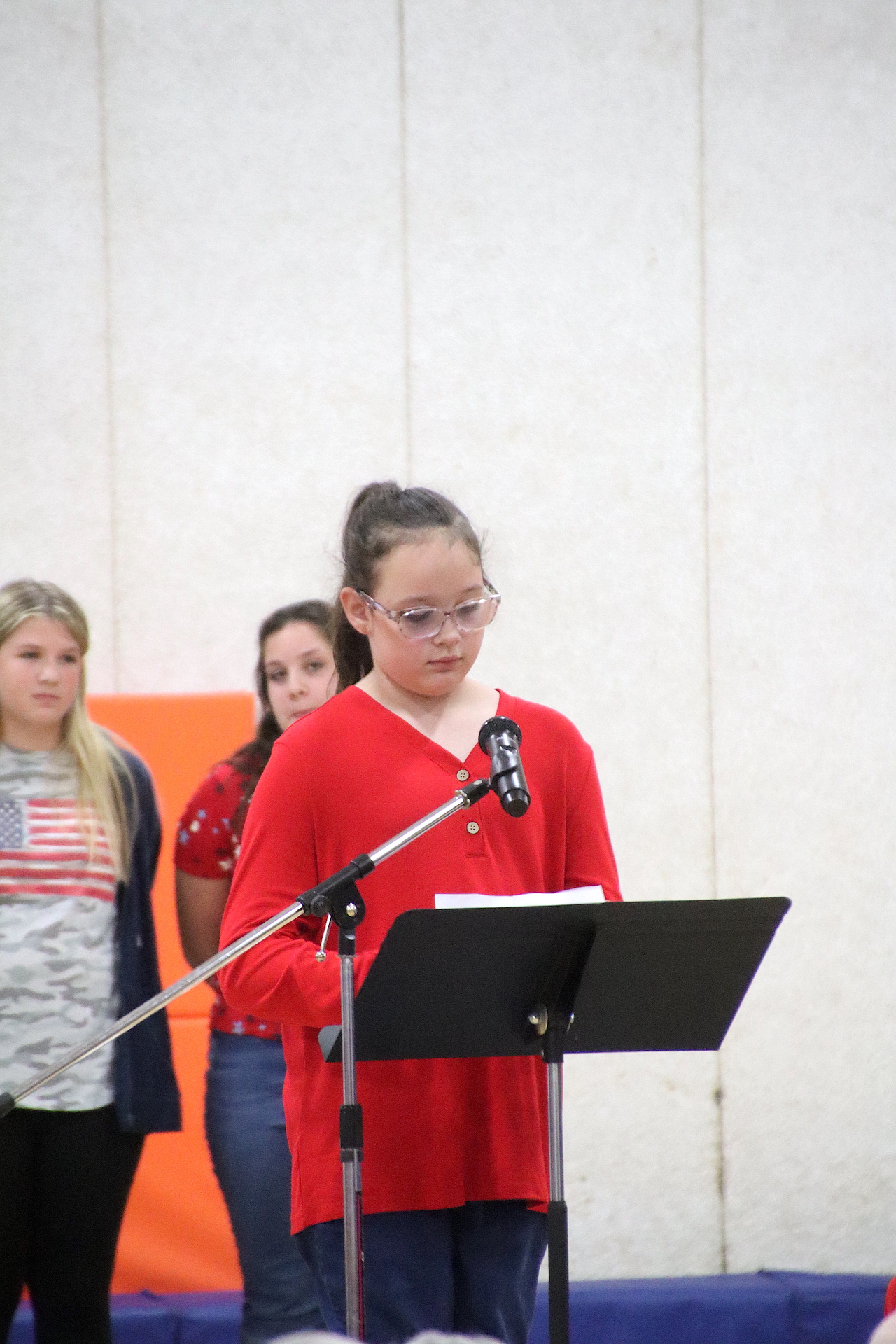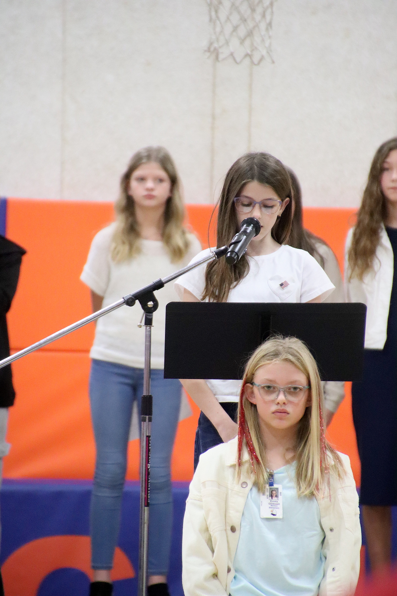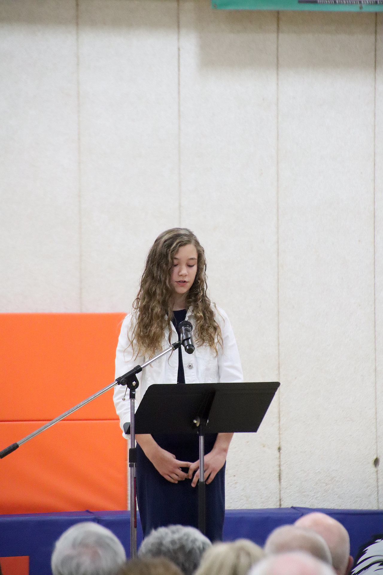 The Presentation of the Colors was completed by the American Legion Members. The Pledge of Allegiance was led by Piper Ghast, 6th grade and signed by Emma Glidewell, 5th grade.