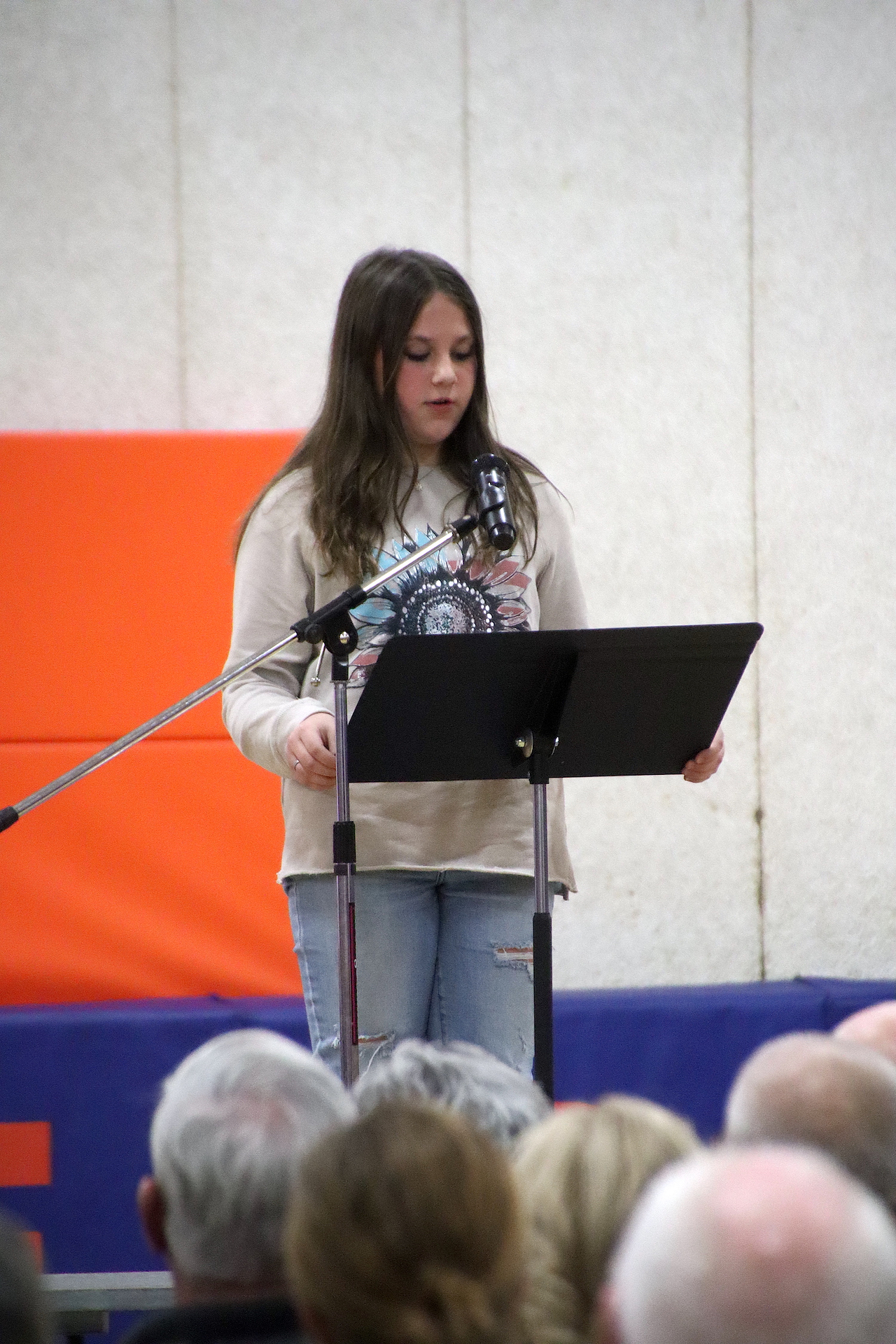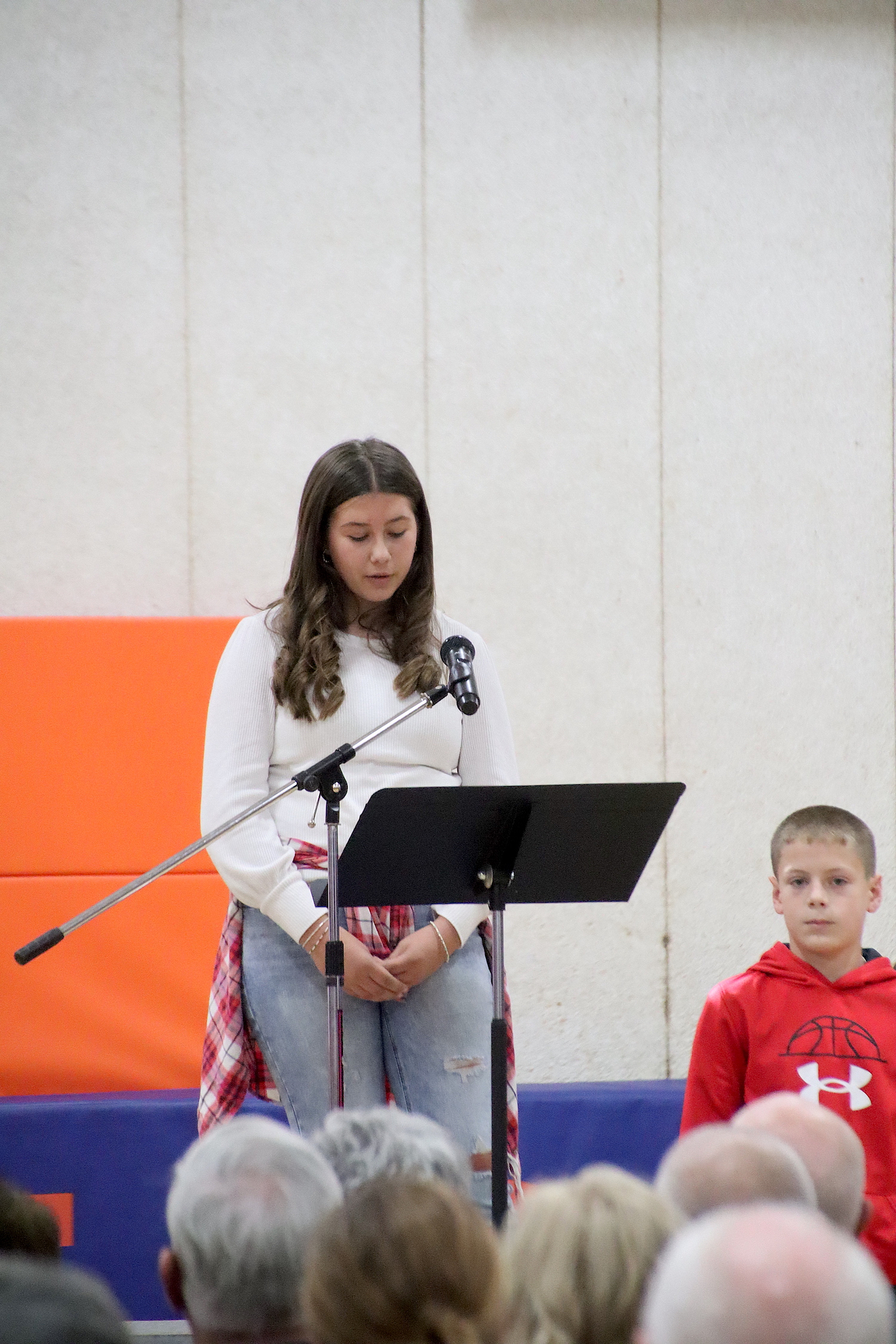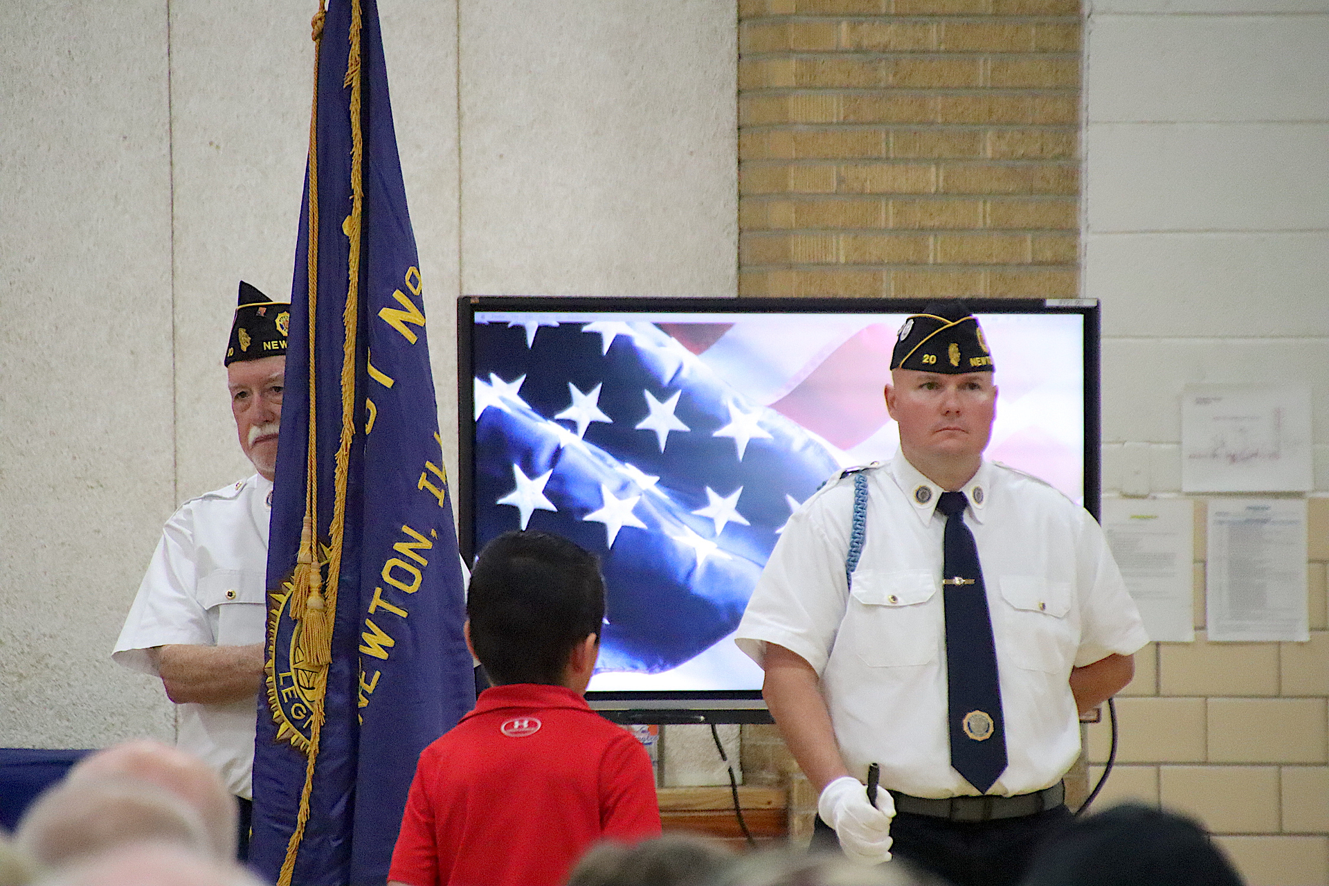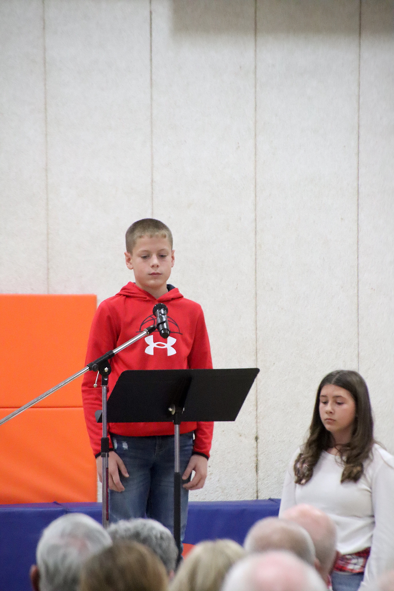 The Presentation of the Colors was completed by the American Legion Members. The Pledge of Allegiance was led by Piper Ghast, 6th grade and signed by Emma Glidewell, 5th grade.