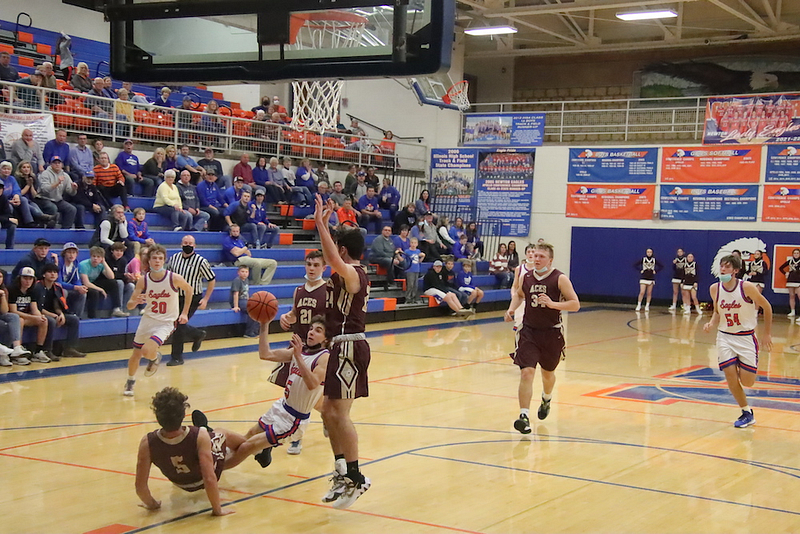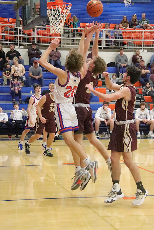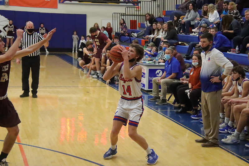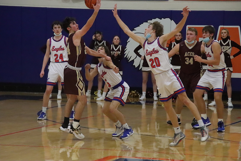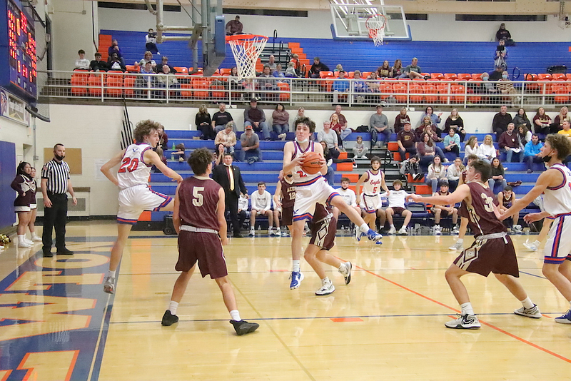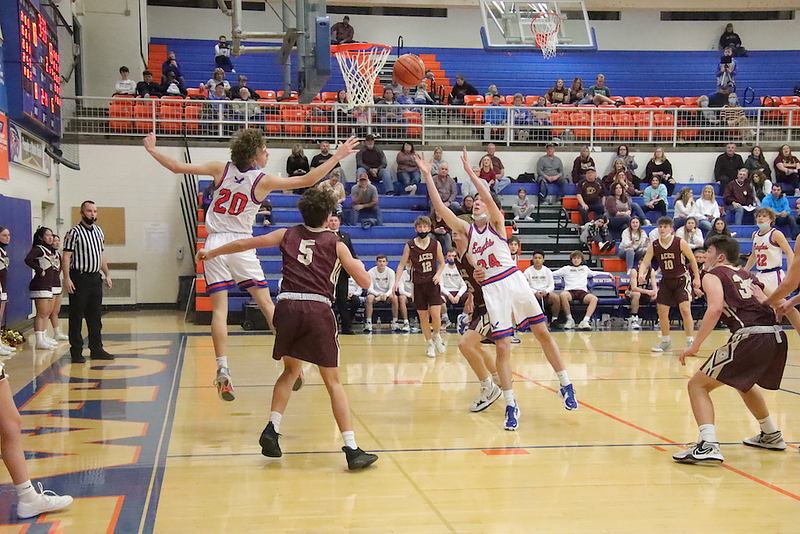 Evan Schafer 20, Ben Meinhart 10, Parker Wolf and Mason Schafer 5 each, and Dylan Geir and Caden Nichols 2 each.