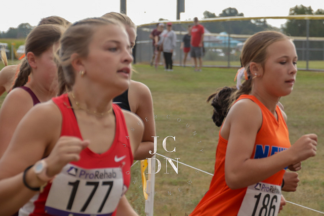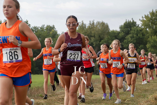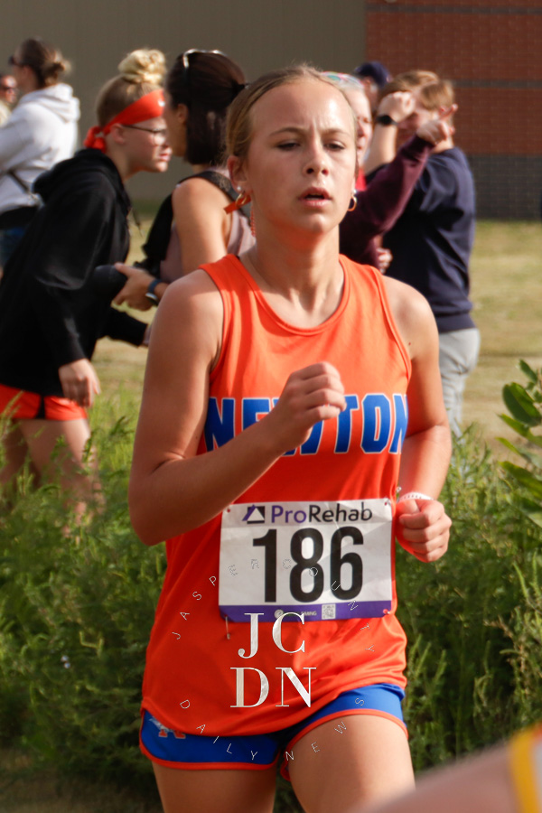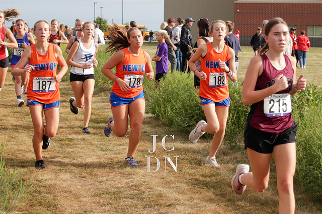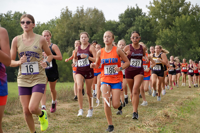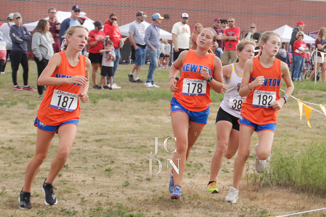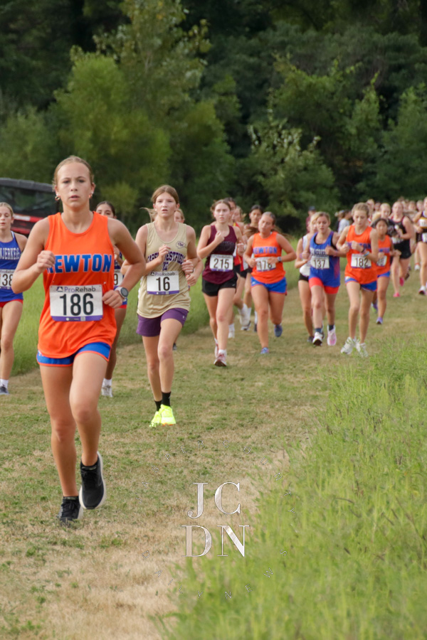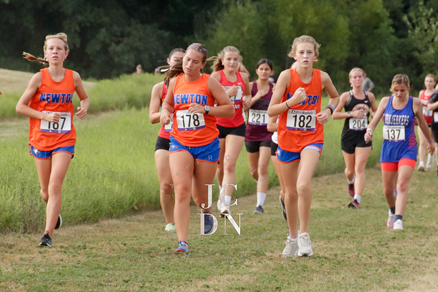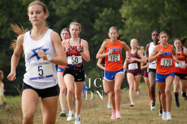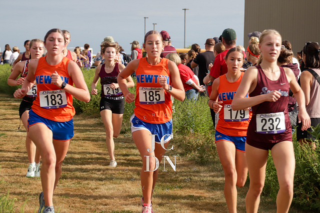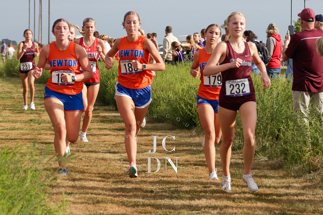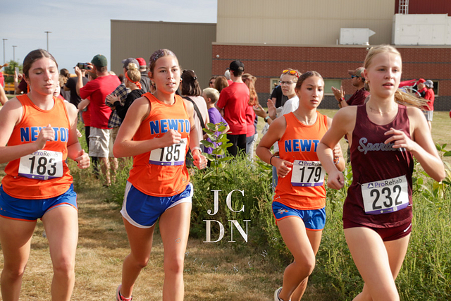 Senior Layna Marshall led the way for Newton with a top-10 finish, placing eighth overall in 20 minutes, 34 seconds. Freshman Heather Bergbower made an immediate impact with a 10th-place finish in 20:50. The Eagles also received strong runs from sophomore Avery Geier (16th, 21:34), freshman Josie Vogt (30th, 23:28), and freshman Nora Street (31st, 23:30). Senior Shay Bennett (34th, 23:51) and senior Lily Yager (55th, 25:26) rounded out Newton’s varsity squad.