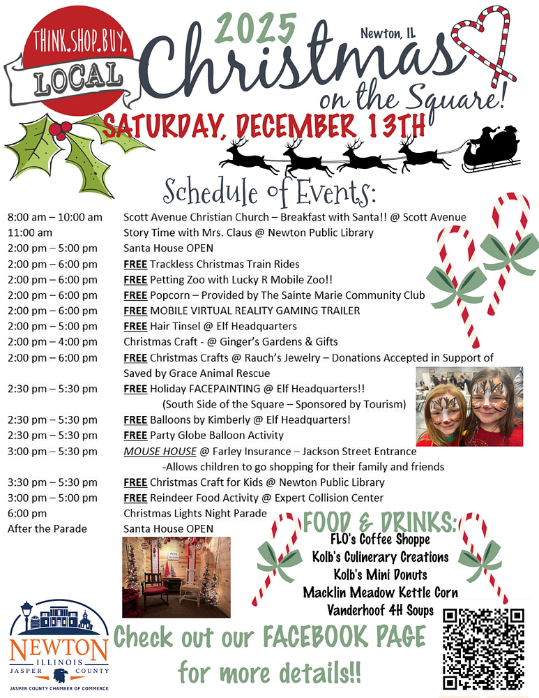 Newton’s beloved Christmas on the Square celebration is returning on Saturday, December 13th, 2025, bringing a full day of festive activities, family fun, and the much-anticipated Christmas Lights Night Parade. Hosted by the Jasper County Chamber of Commerce, this year’s celebration promises more attractions, more holiday cheer, and more reasons for families to spend the day together on the Square.