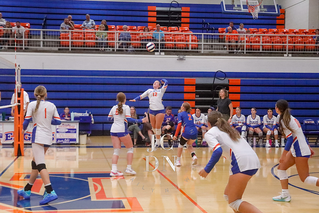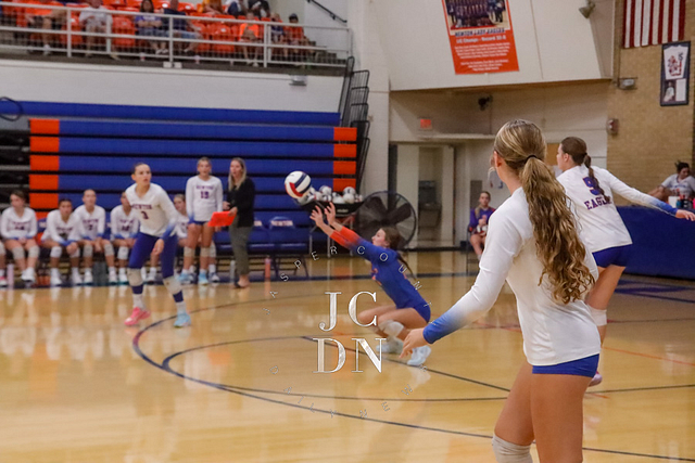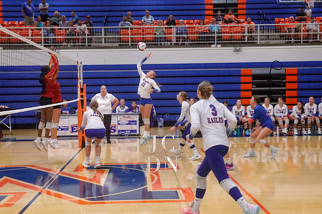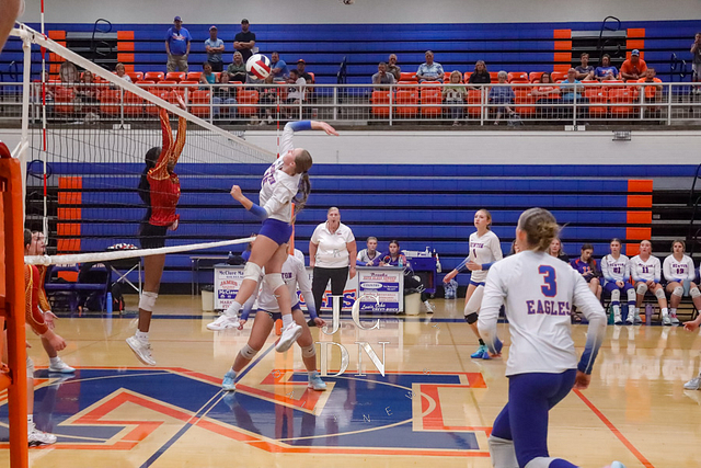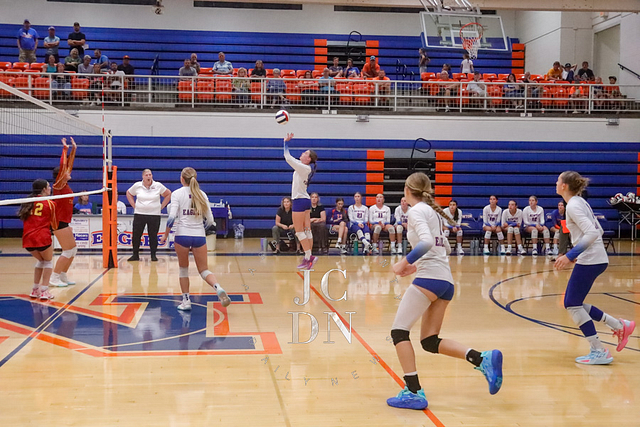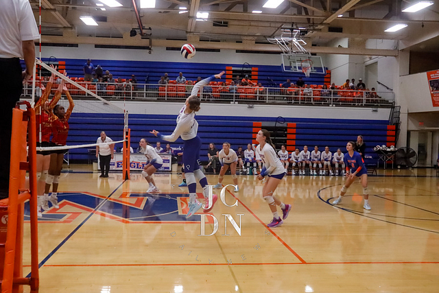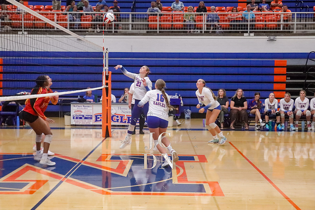 The Eagles earned a program sweep over Charleston, with all three levels collecting victories. The freshmen won 25-22, 25-10, followed by a JV sweep 25-17, 25-21. The varsity closed the night with a gritty 25-23, 25-22 win to move to 7-8 on the season.