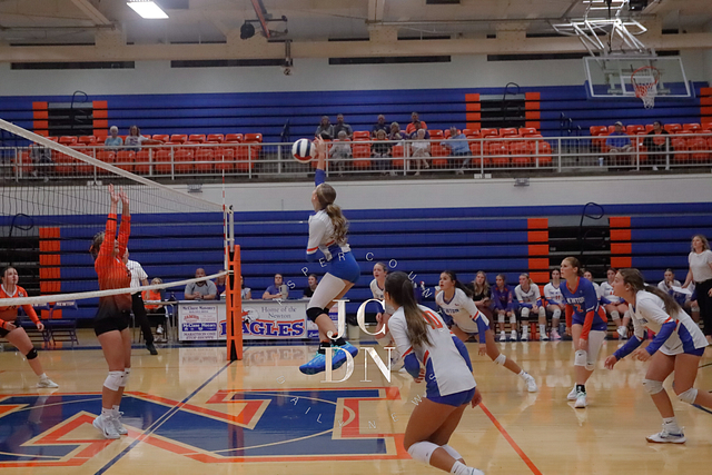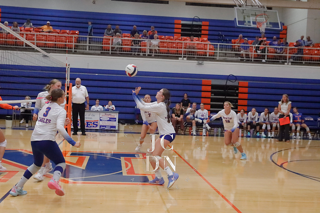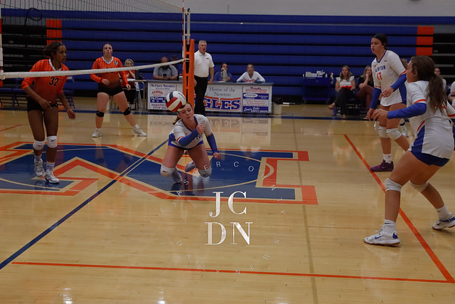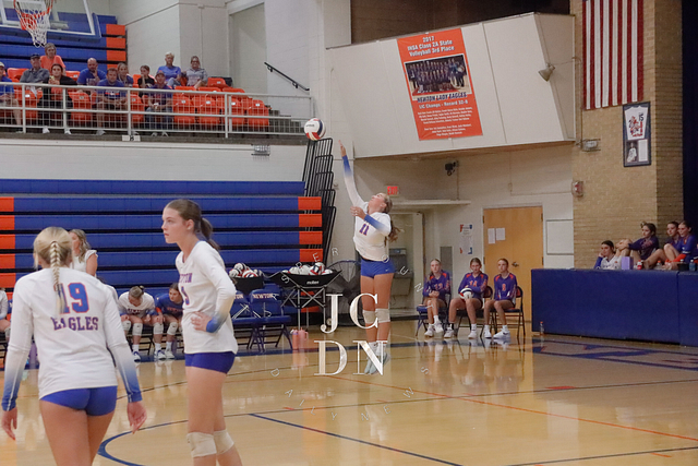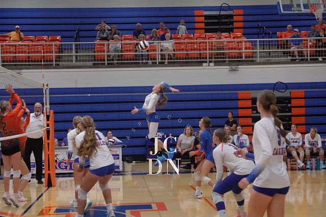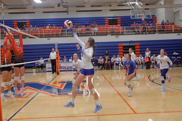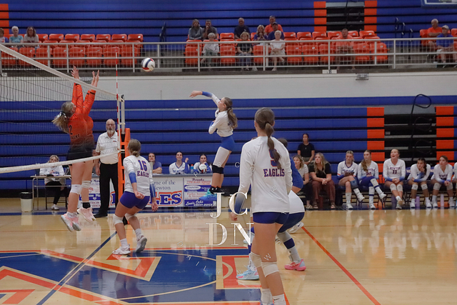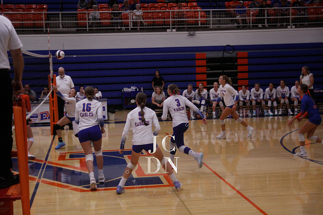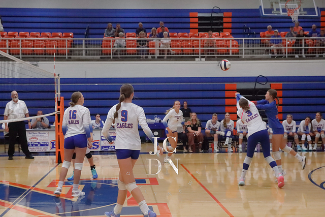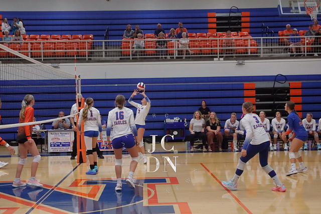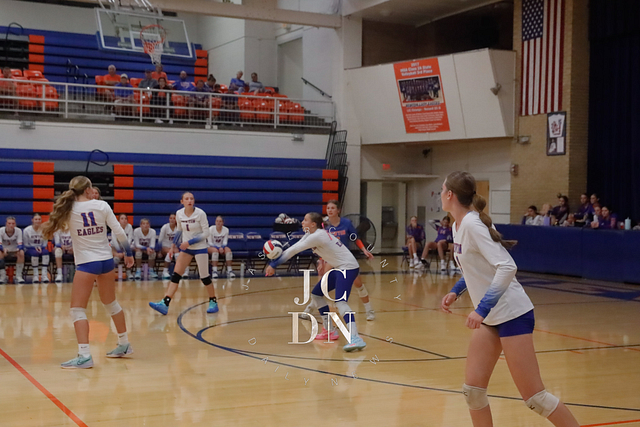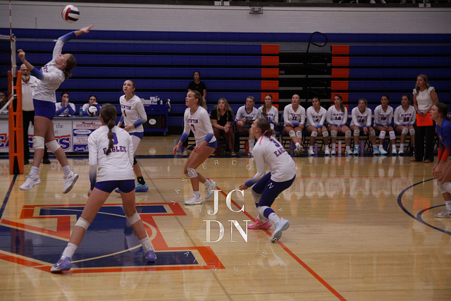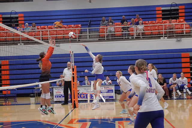 Senior Isabel Meinhart sparked the Eagles at the service line with four aces while also contributing a block, four digs, and an assist. Fellow senior Hydi Bierman filled the stat sheet with three aces, eight kills, three digs, and two assists, while junior Claire Probst matched Bierman with eight kills of her own and added three digs and a block.