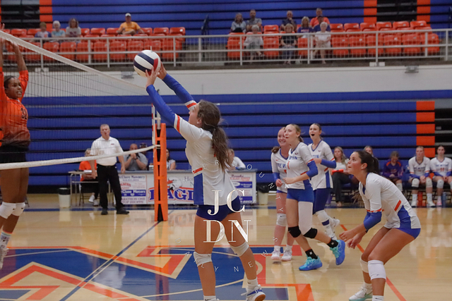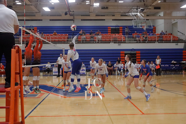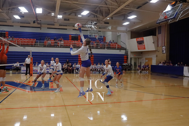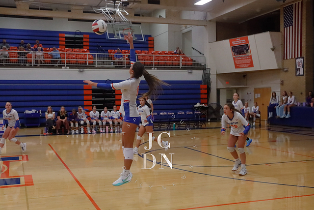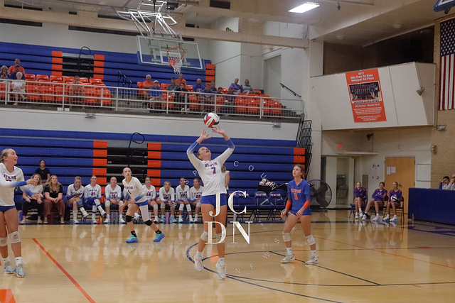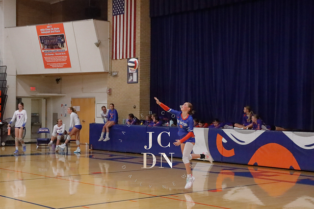 Earlier in the evening, the JV squad held off a determined opponent for a 25-20, 25-21 win. The freshman team set the tone with a straight-set victory of their own, taking down their opponent 25-15, 25-17.