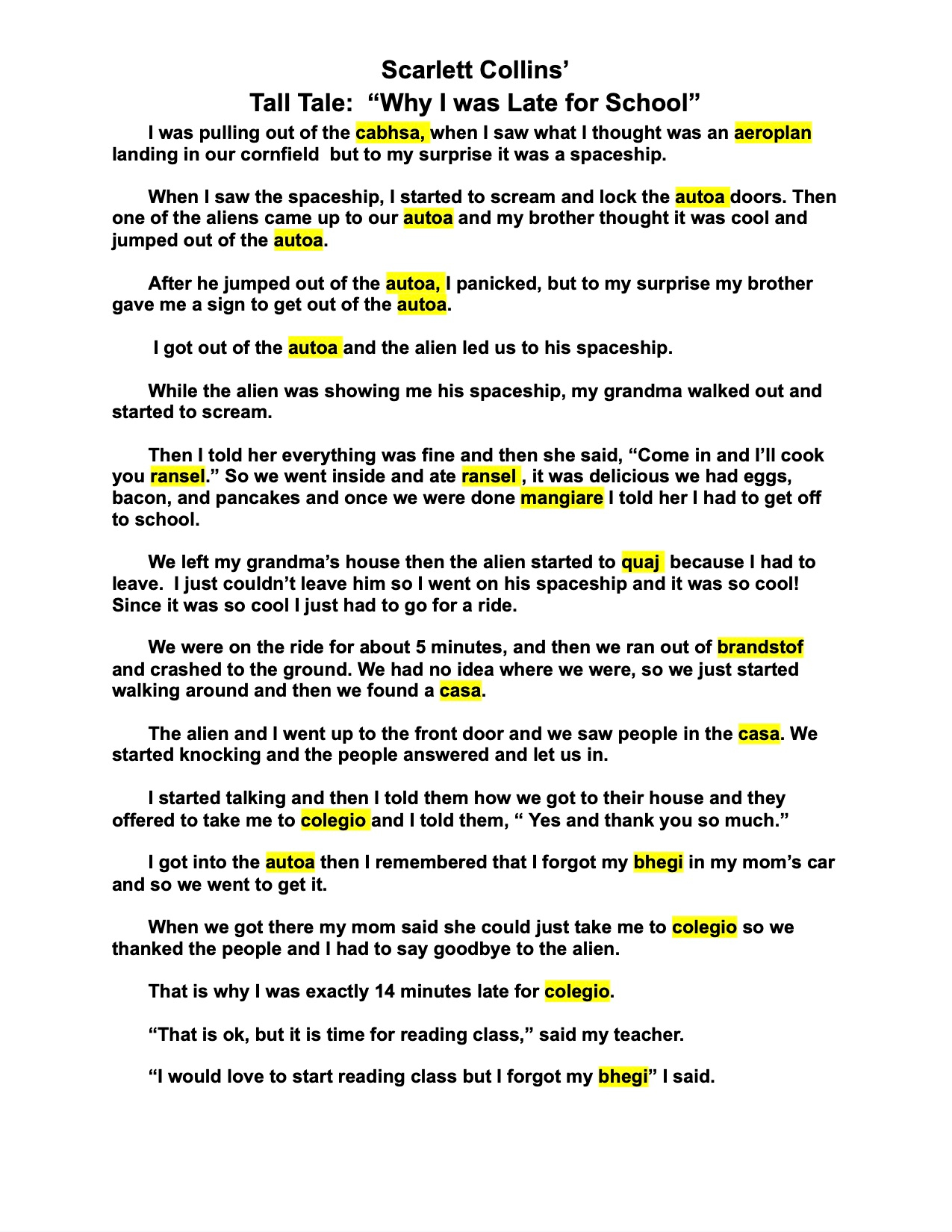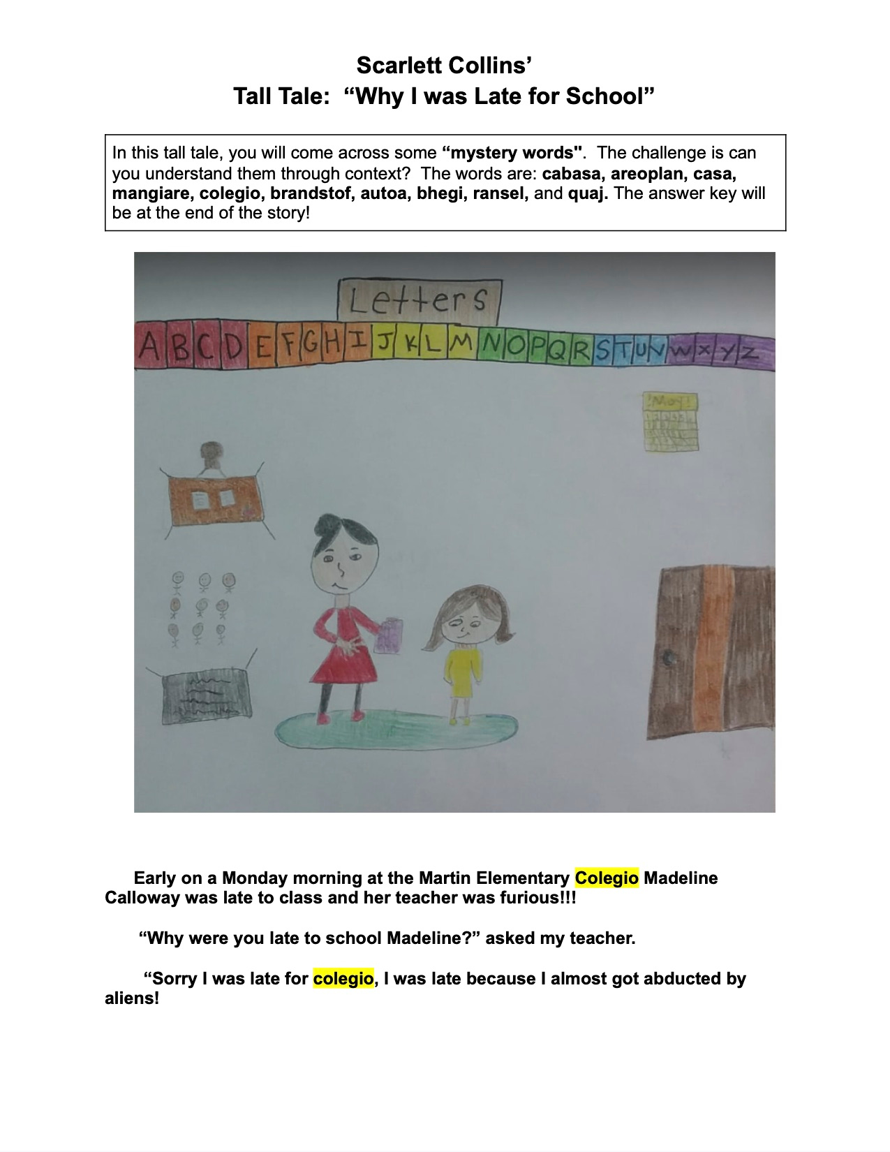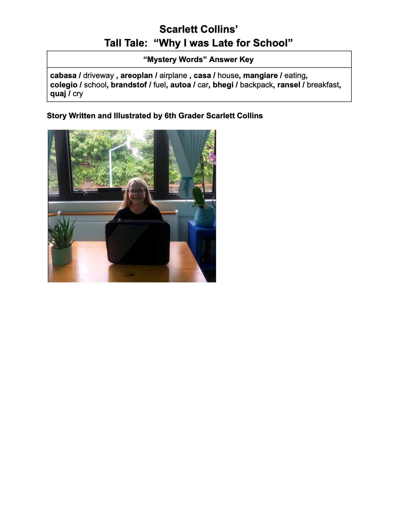 Scarlett is a member of Mrs. Klingler’s Class and her Tall Tale is titled, “Why I Was Late For School”