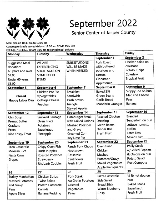 From the Jasper County Senior Center…