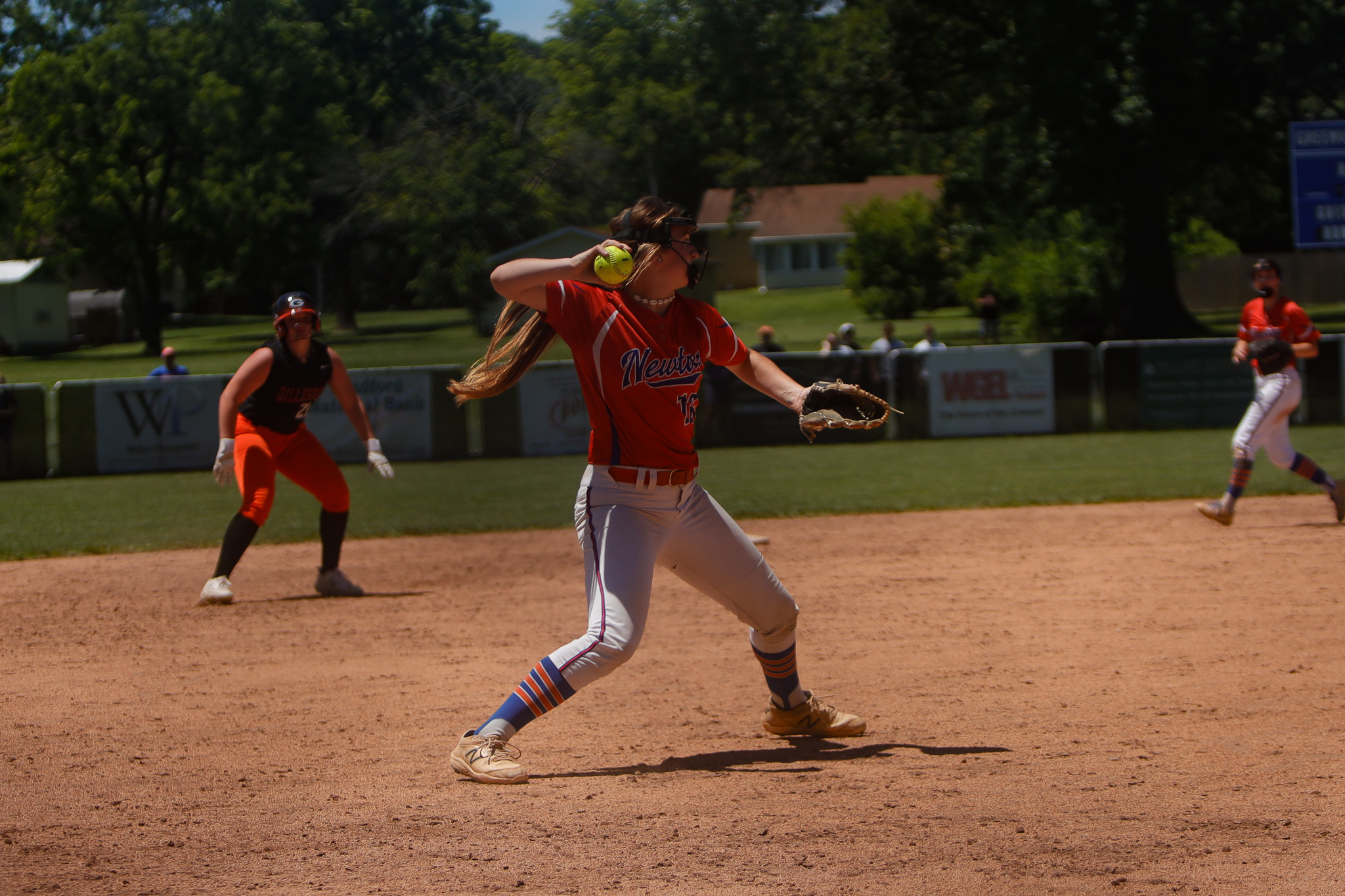 Both teams were strong in the circle on Saturday, but NCHS Lady Eagles defeated Gillespie Varsity Gillespie High School Varsity 3-2. Amelia Collins started the game for NCHS Lady Eagles and recorded 24 outs.