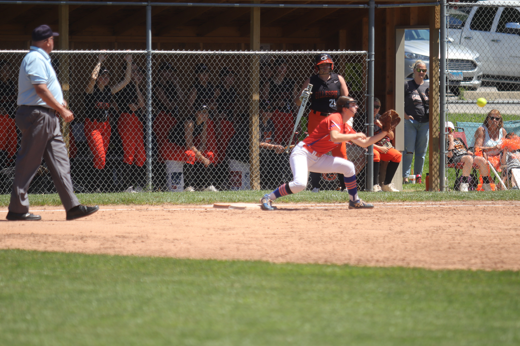 Emma Gipson doubled, which helped Gillespie Varsity Gillespie High School Varsity tie the game at one in the bottom of the first.