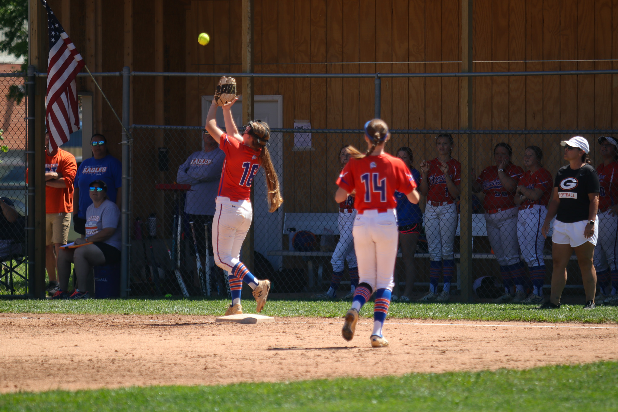 NCHS Lady Eagles got on the board in the first inning after Sally Mahaffey hit a solo home run to right field.