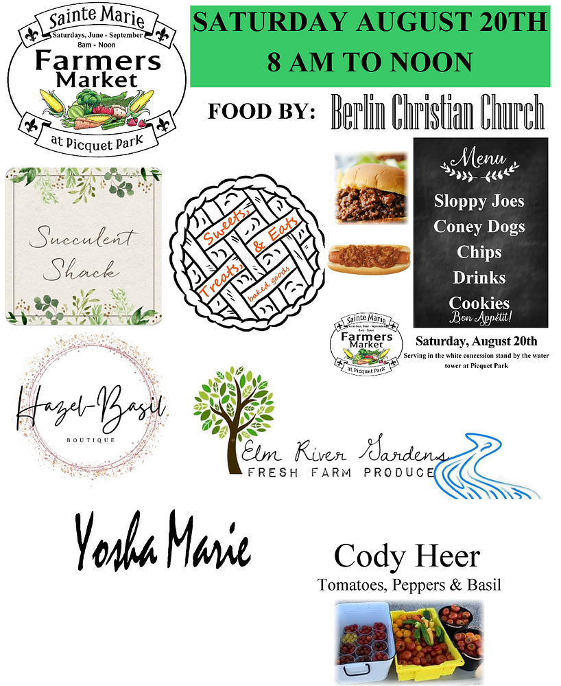 Here is what is happening at the Sainte Marie Farmers Market this Saturday, August 20th from 8 am to Noon at Picquet Park in Sainte Marie, Illinois. FOOD AND GREAT VENDORS!