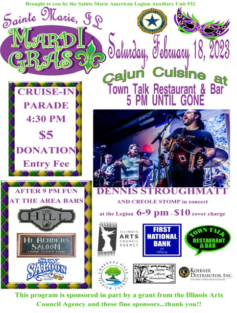 On Saturday, February 18th Ste. Marie will come alive with Mardi Gras festivities. See below for full details.