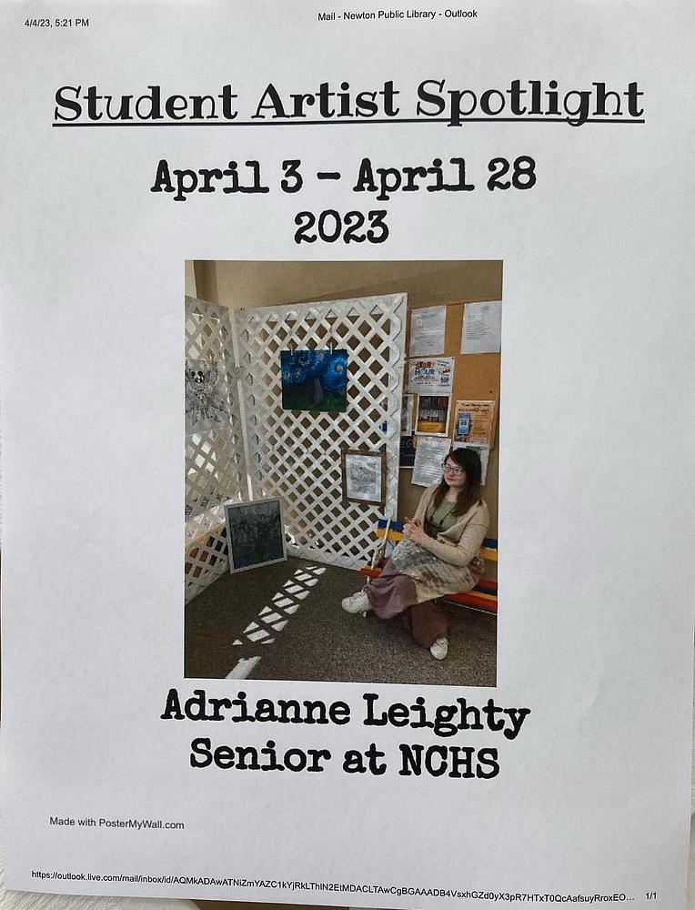 Adrianne Leighty will be showcasing her artistic talents at the Newton Public Library through the 28th of April.
