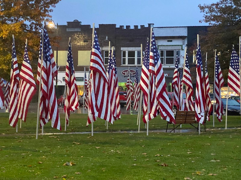 The Veterans Day tradition of the flags flying on the courthouse lawn continues this year. Be sure to visit this humbling scene before 4 today when the flags will be retired.